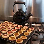 El desayuno se sirve con pasteles frescos y fruta fresca.